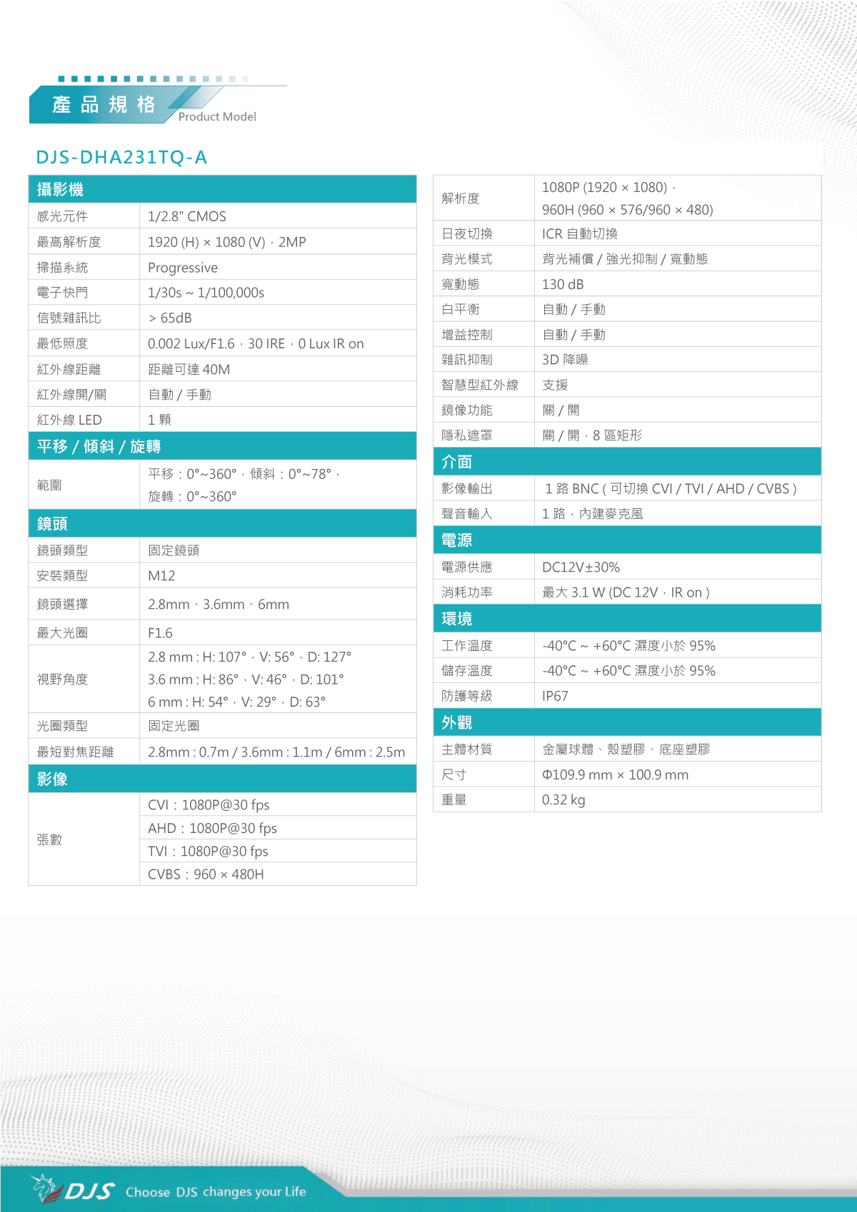| 解析度 | 1080P (1920 × 1080),960H (960 × 576/960 × 480) | |||