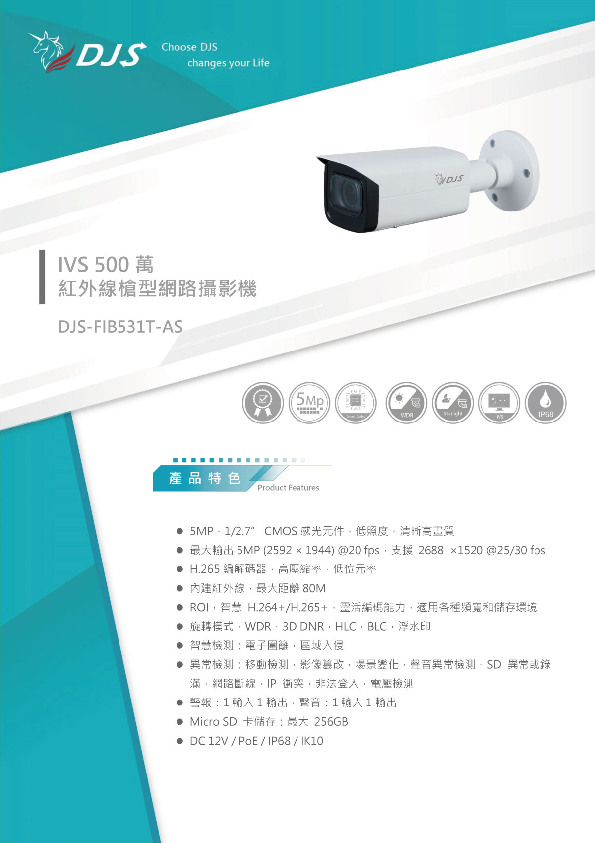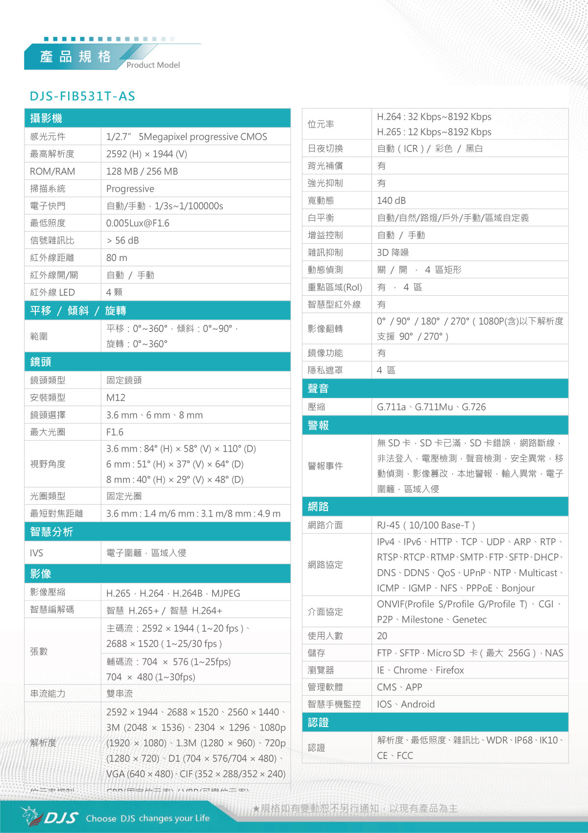 主碼流: 2592 × 1944 ( 1~20 fps )、 2688 × 1520 ( 1~25/30 fps ) |