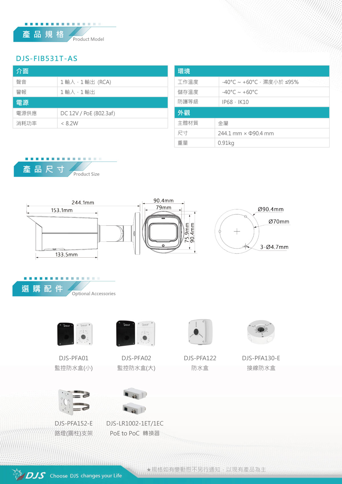 解析度、最低照度、雜訊比、WDR、IP68、IK10、 CE、FCC |
