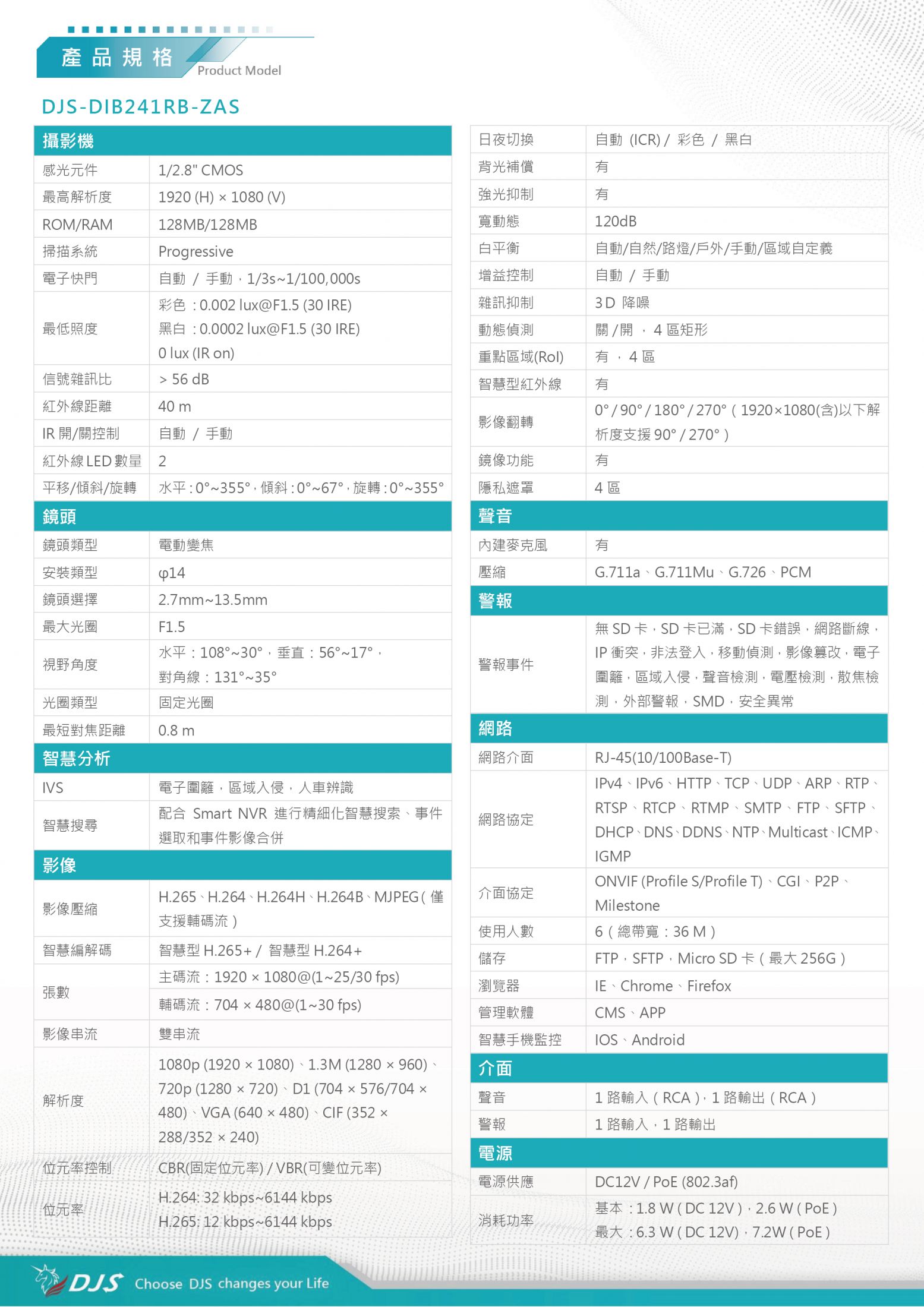 彩色 : 0.002 lux@F1.5 (30 IRE)