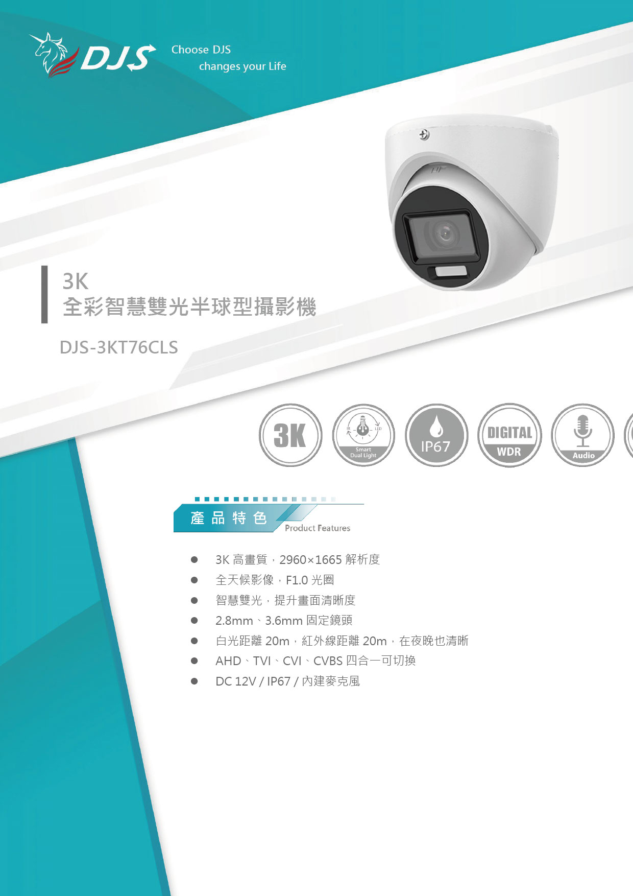 - DC 12V / IP67 / 內建麥克風