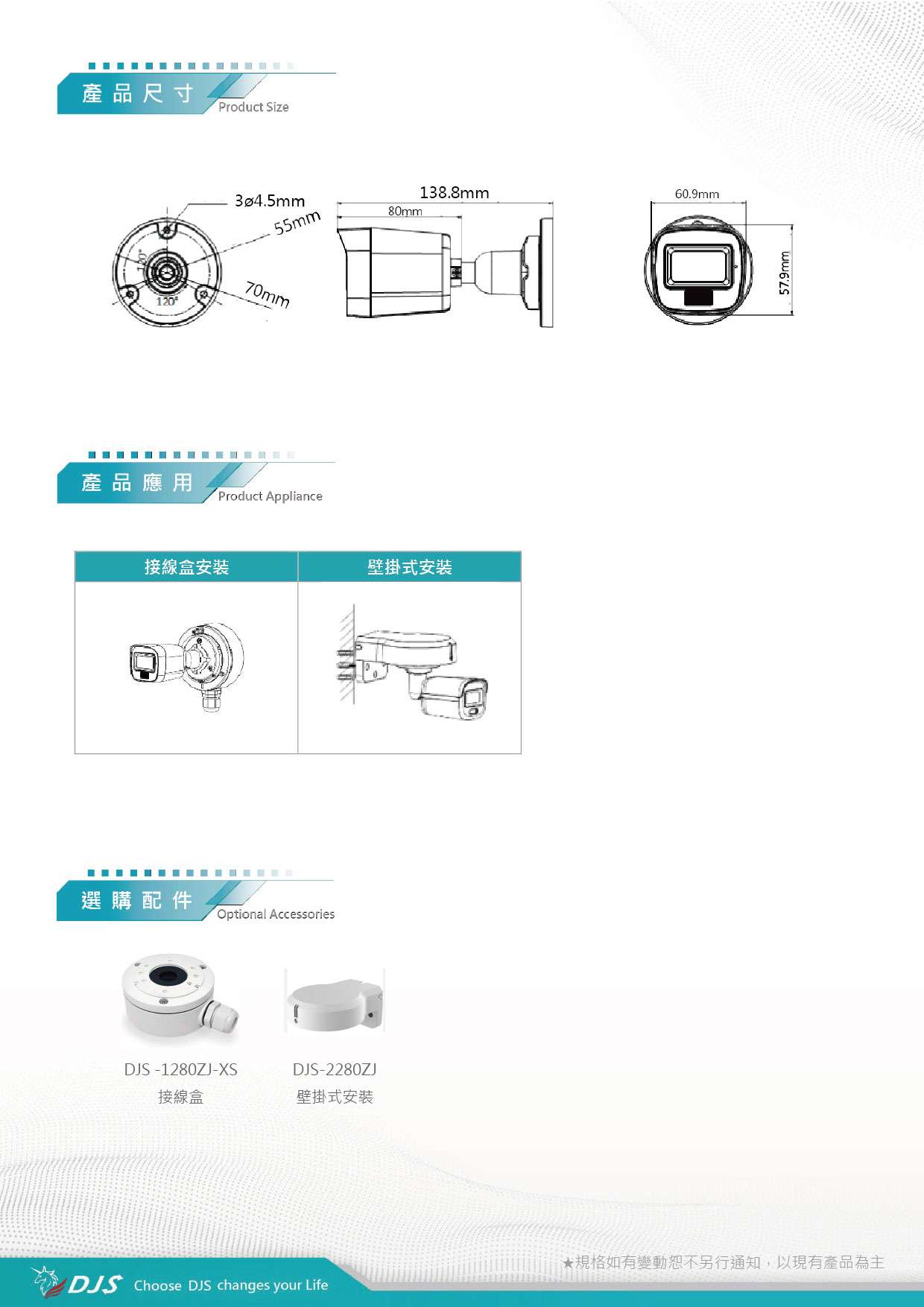 | 鏡頭選擇 | 2.8mm、3.6mm | |||