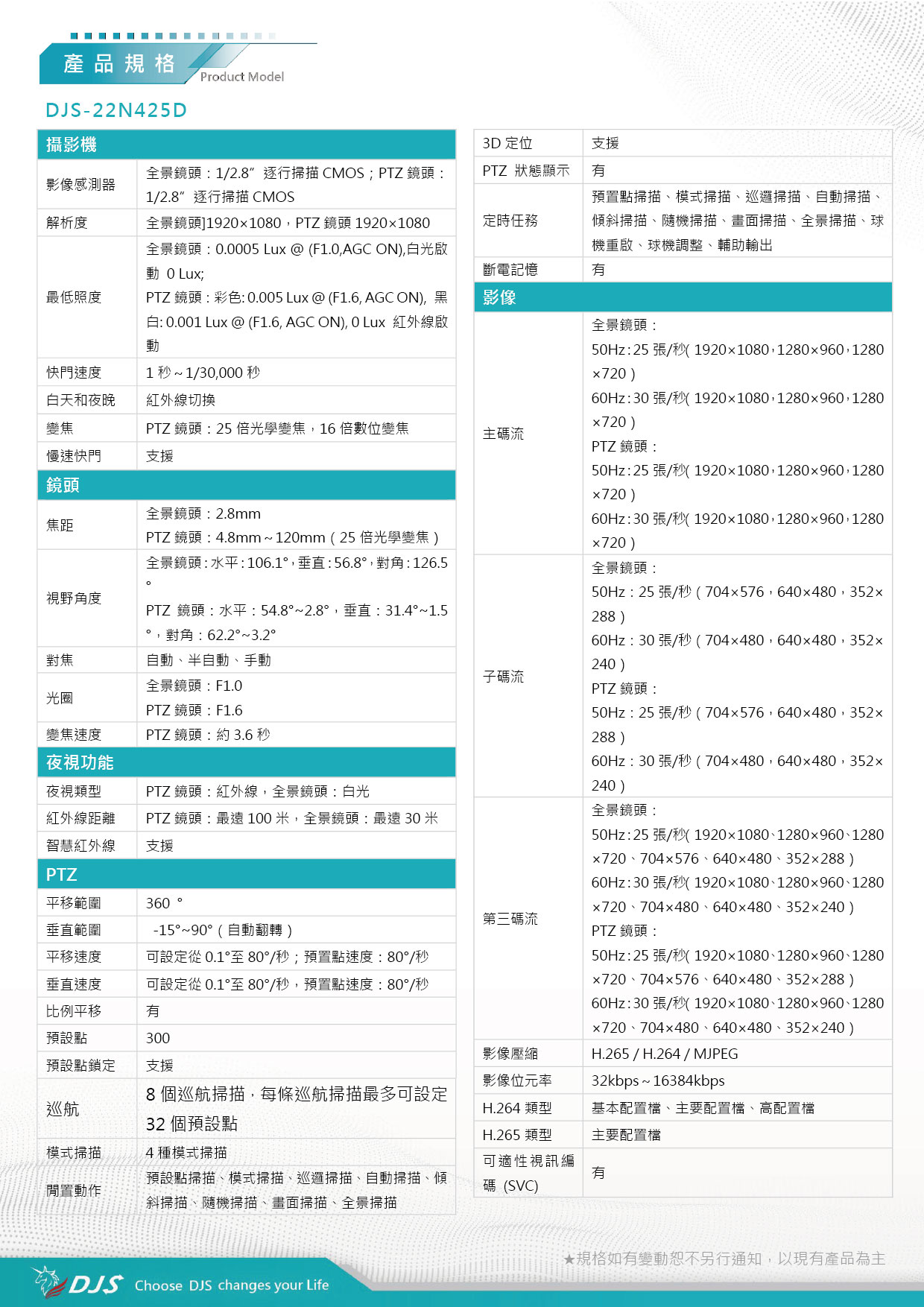 | 變焦 | PTZ鏡頭:25倍光學變焦,16倍數位變焦 | |||