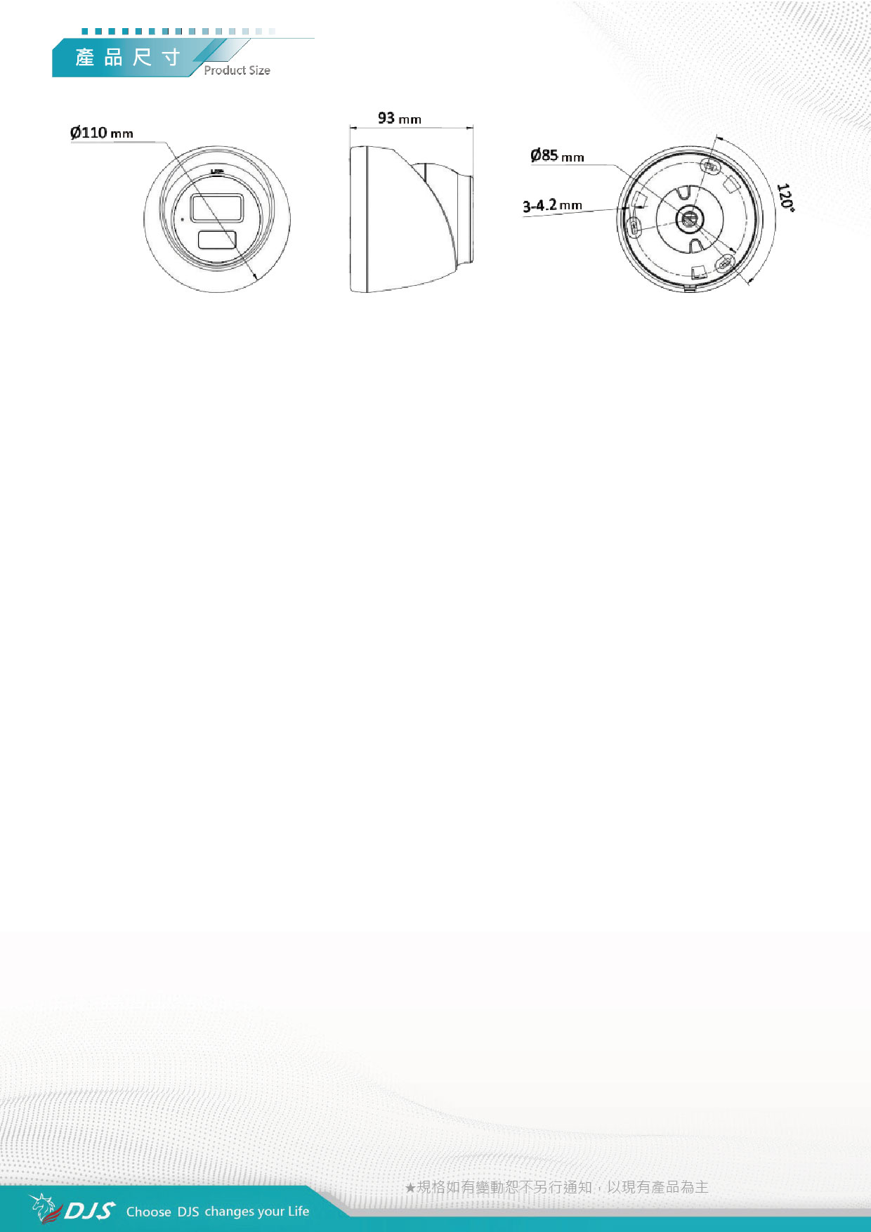 | 最低照度 | 彩色:0.01Lux@(F2.2, AGC ON),黑白:0 Lux(紅外線開啟) | |||