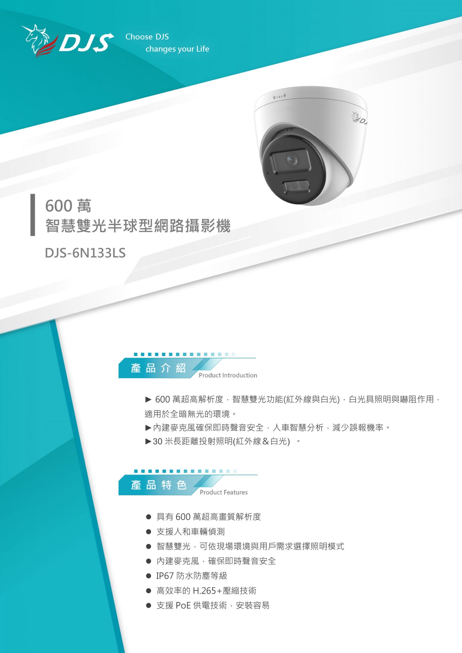 - 支援PoE供電技術,安裝容易