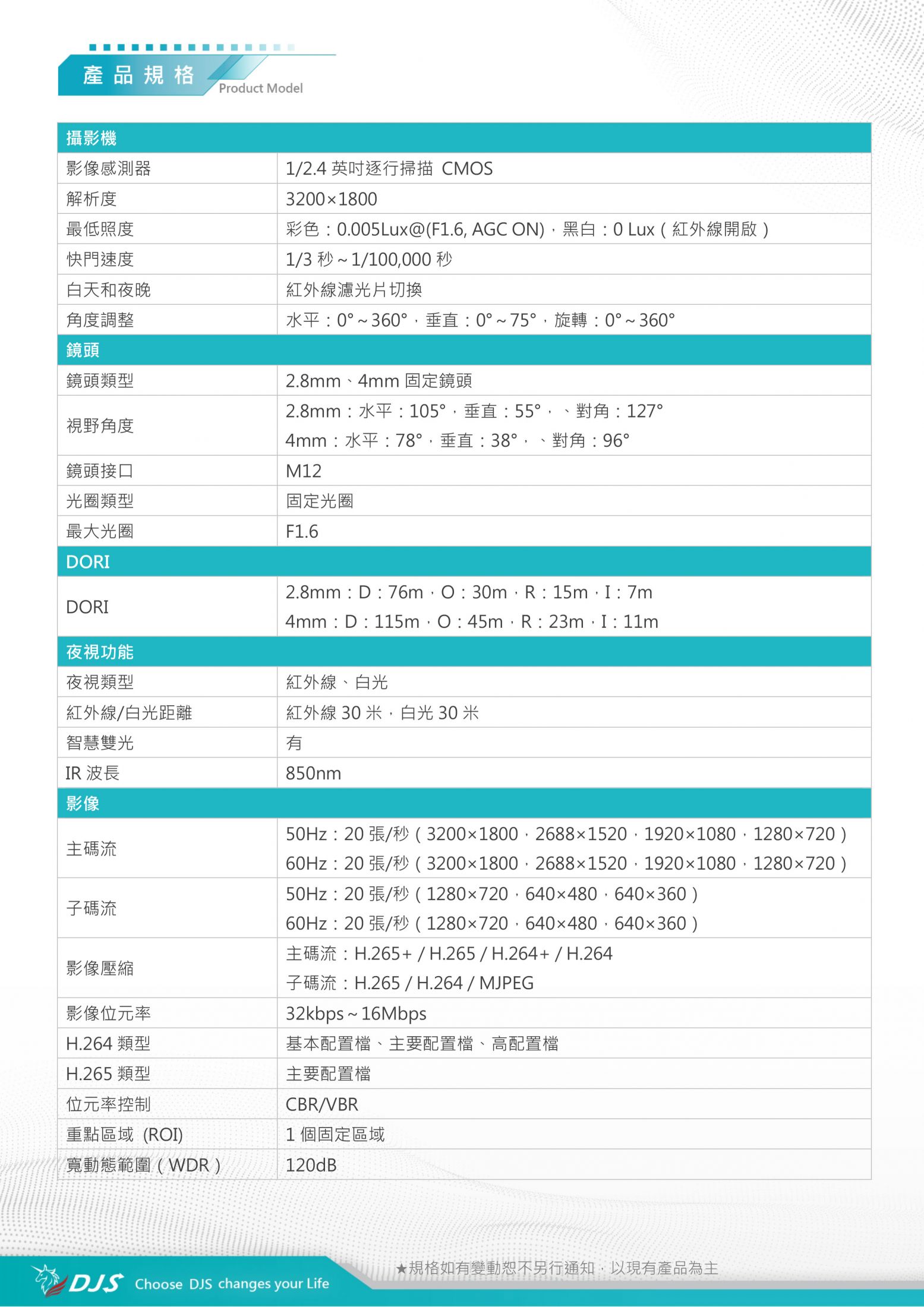 | 鏡頭類型 | 2.8mm 、 4mm 固定鏡頭 | |||