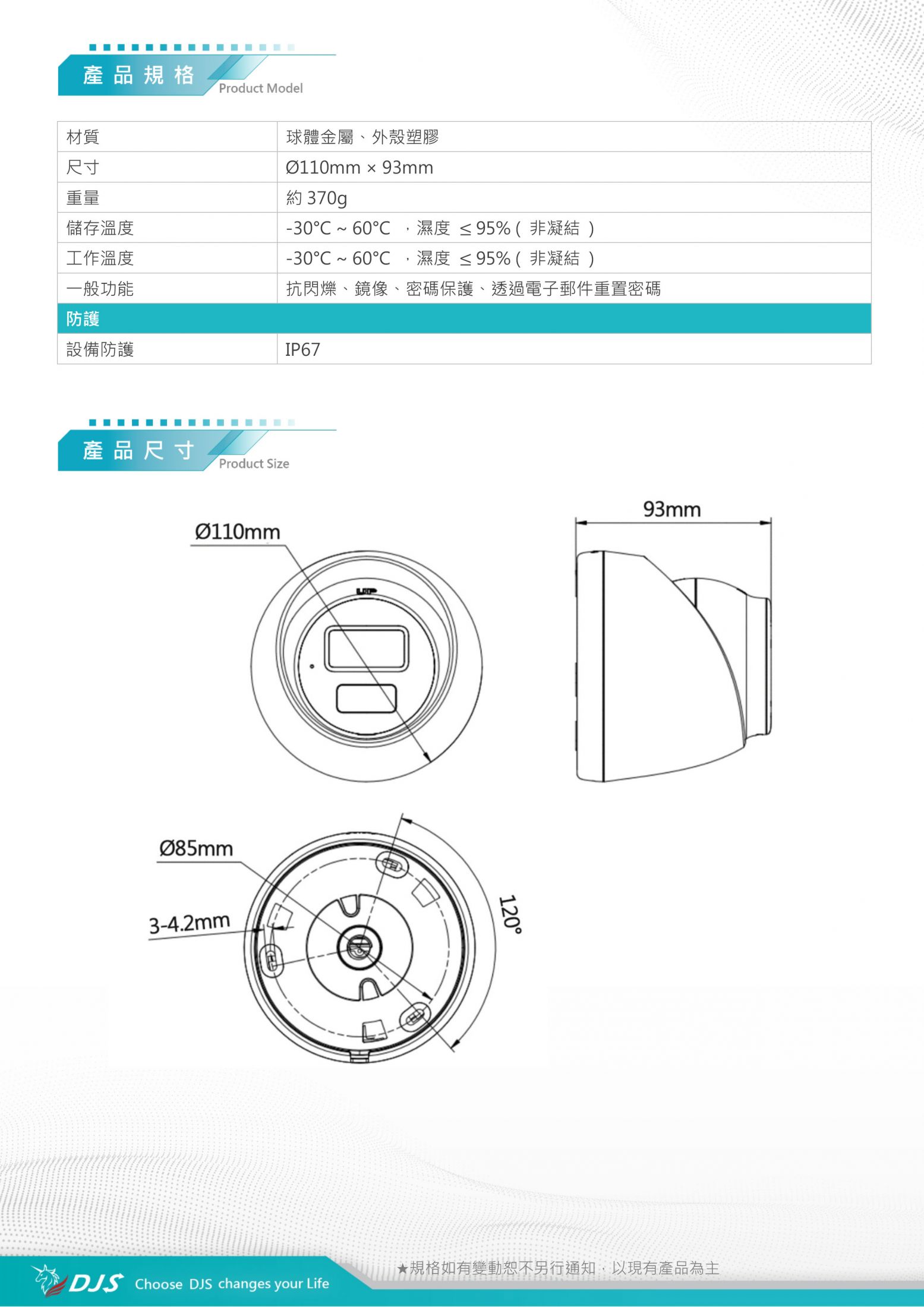 | 尺寸 | Ø110mm × 93mm | |||