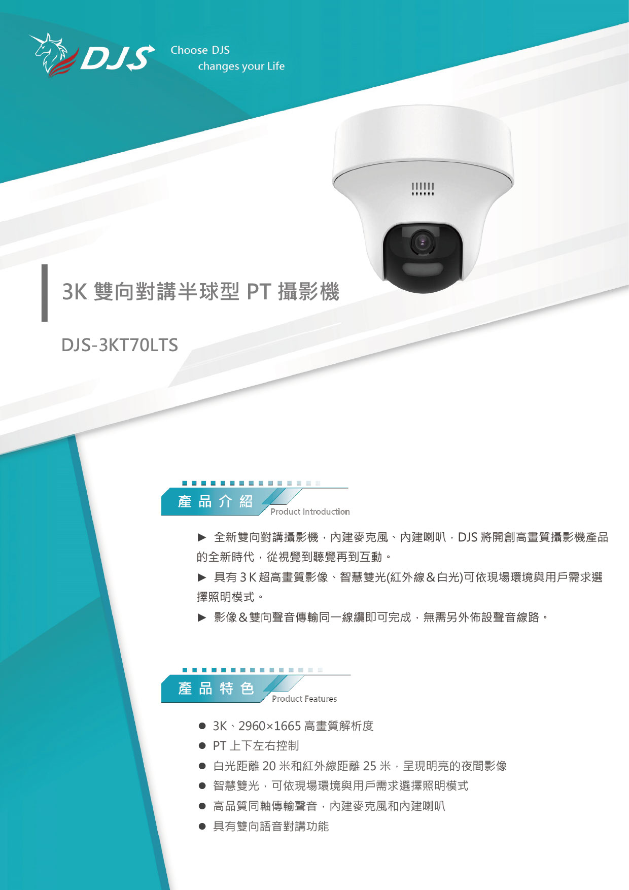 3K雙向對講半球型PT攝影機