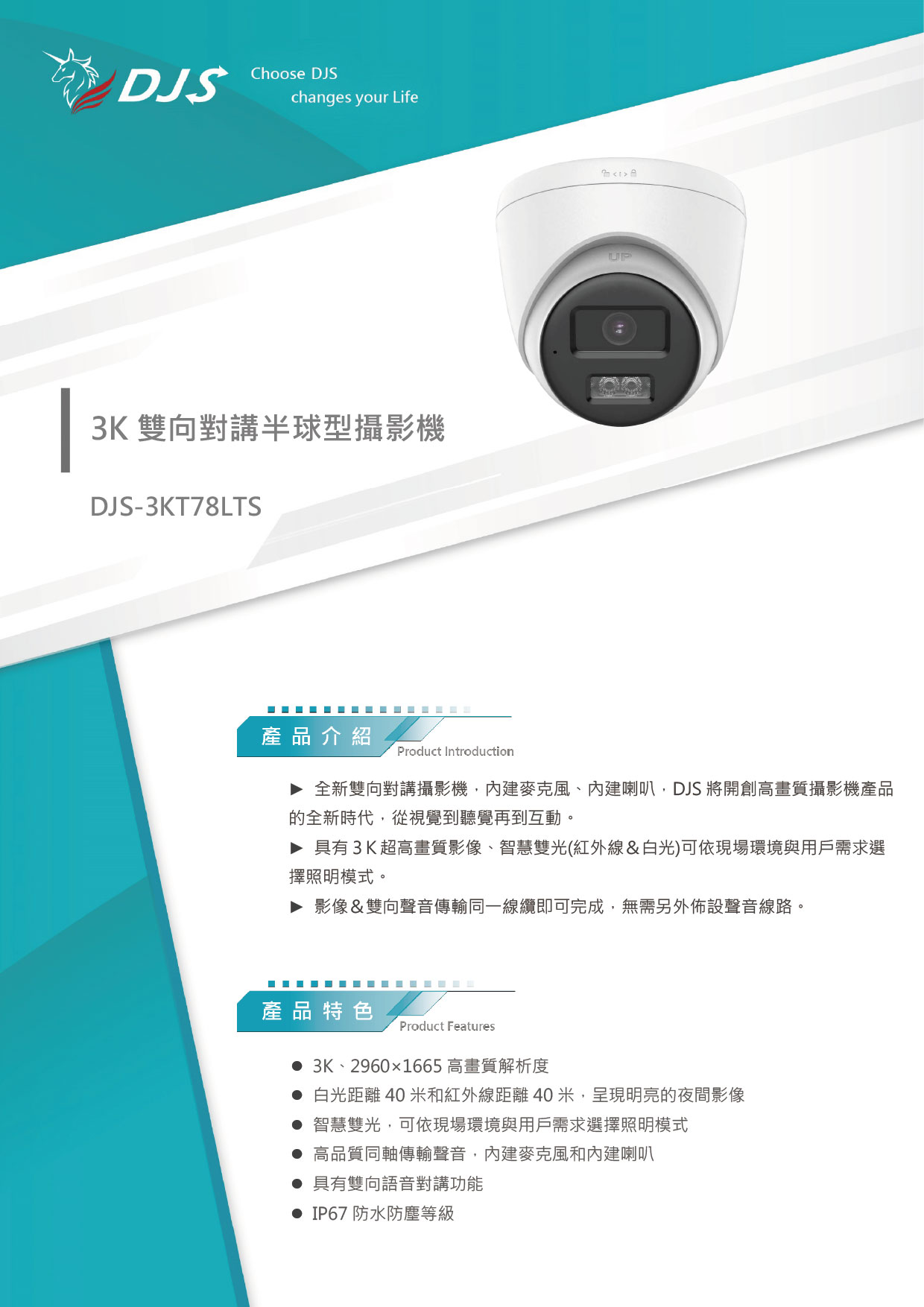 3K雙向對講半球型攝影機