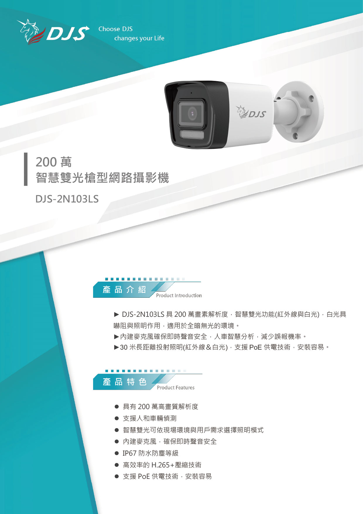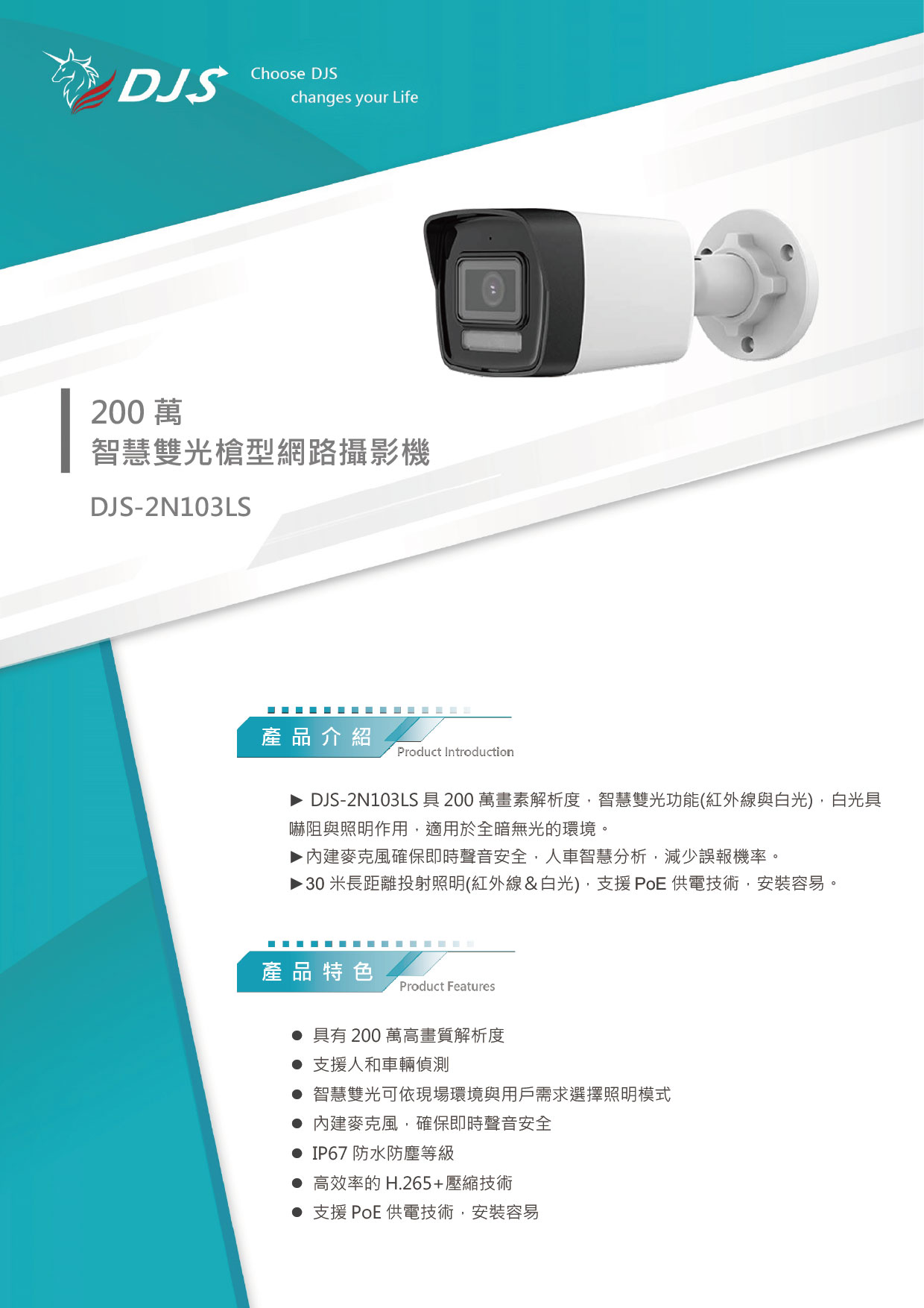 - 支援PoE供電技術,安裝容易