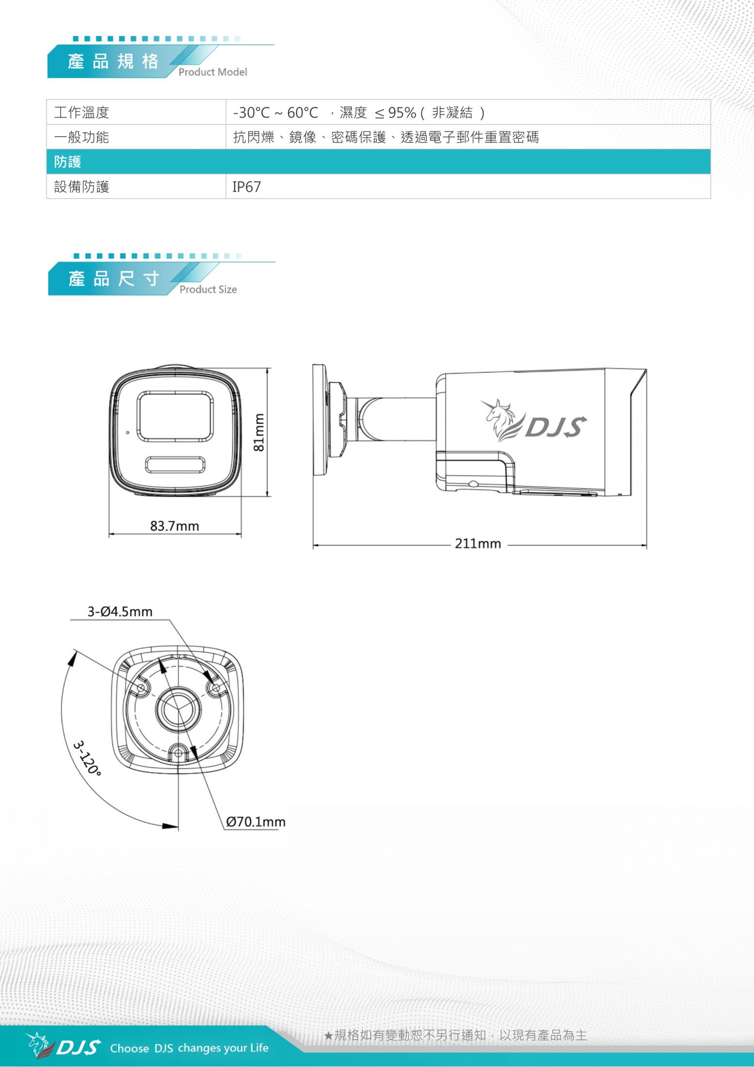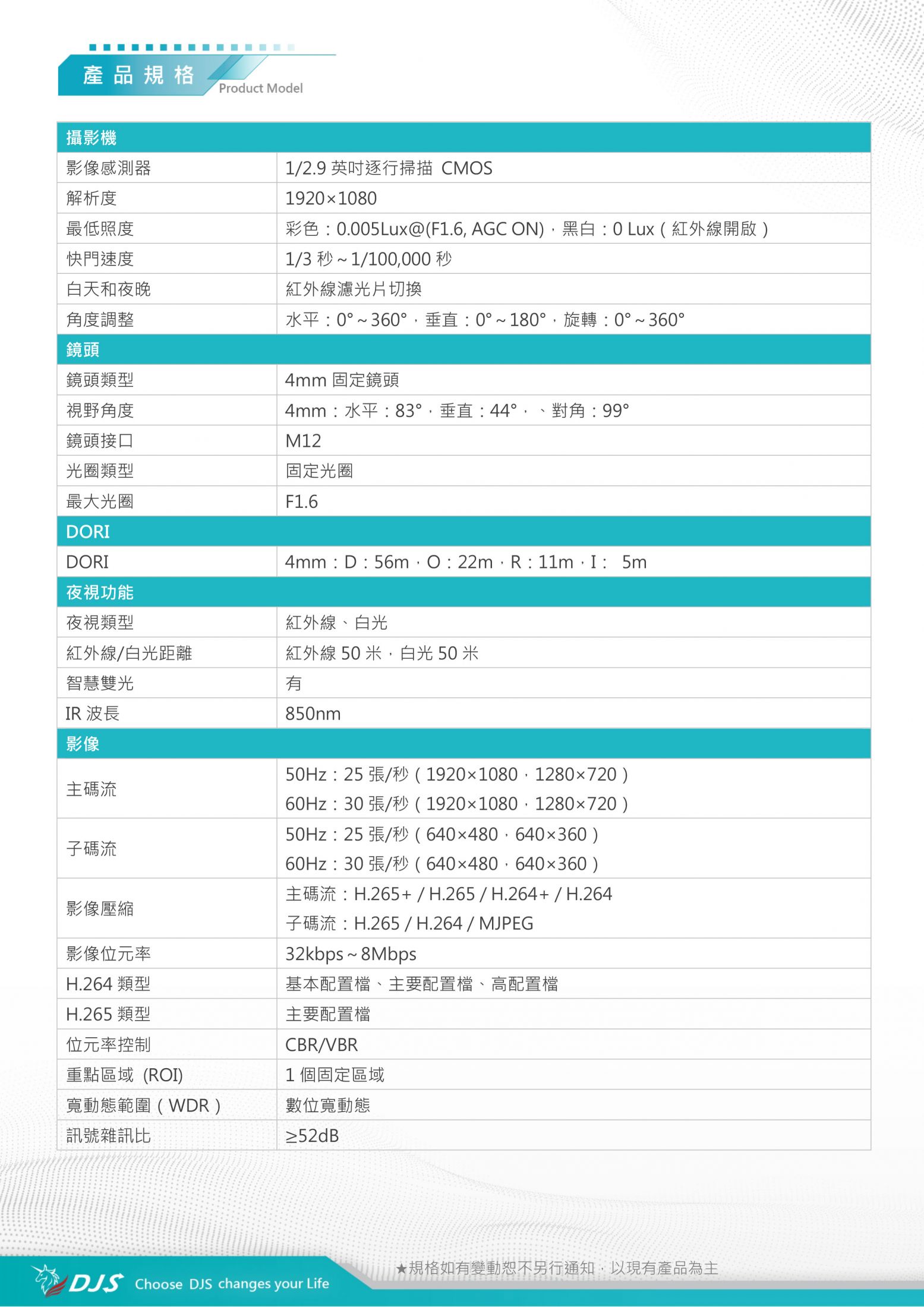 | 鏡頭類型 | 4mm固定鏡頭 | |||
