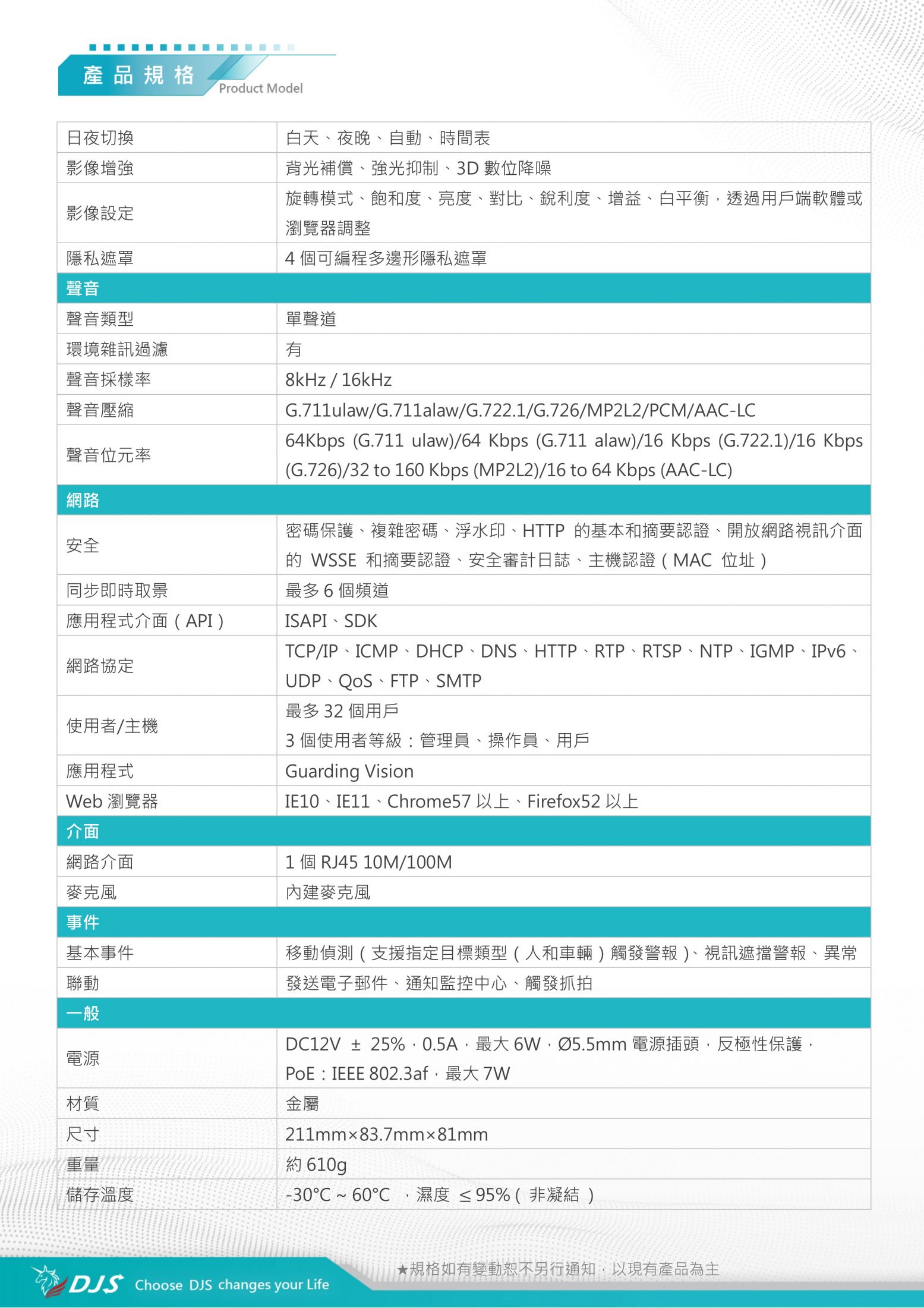| 影像設定 | 旋轉模式、飽和度、亮度、對比、銳利度、增益、白平衡,透過用戶端軟體或瀏覽器調整 | |||
