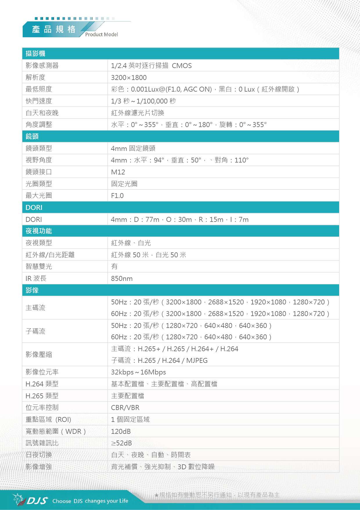 | 鏡頭類型 | 4mm 固定鏡頭 | |||