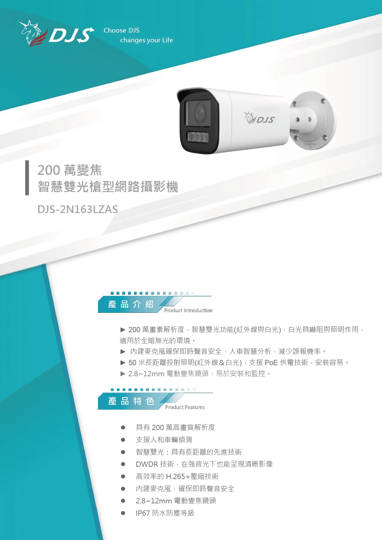 200萬變焦智慧雙光槍型網路攝影機