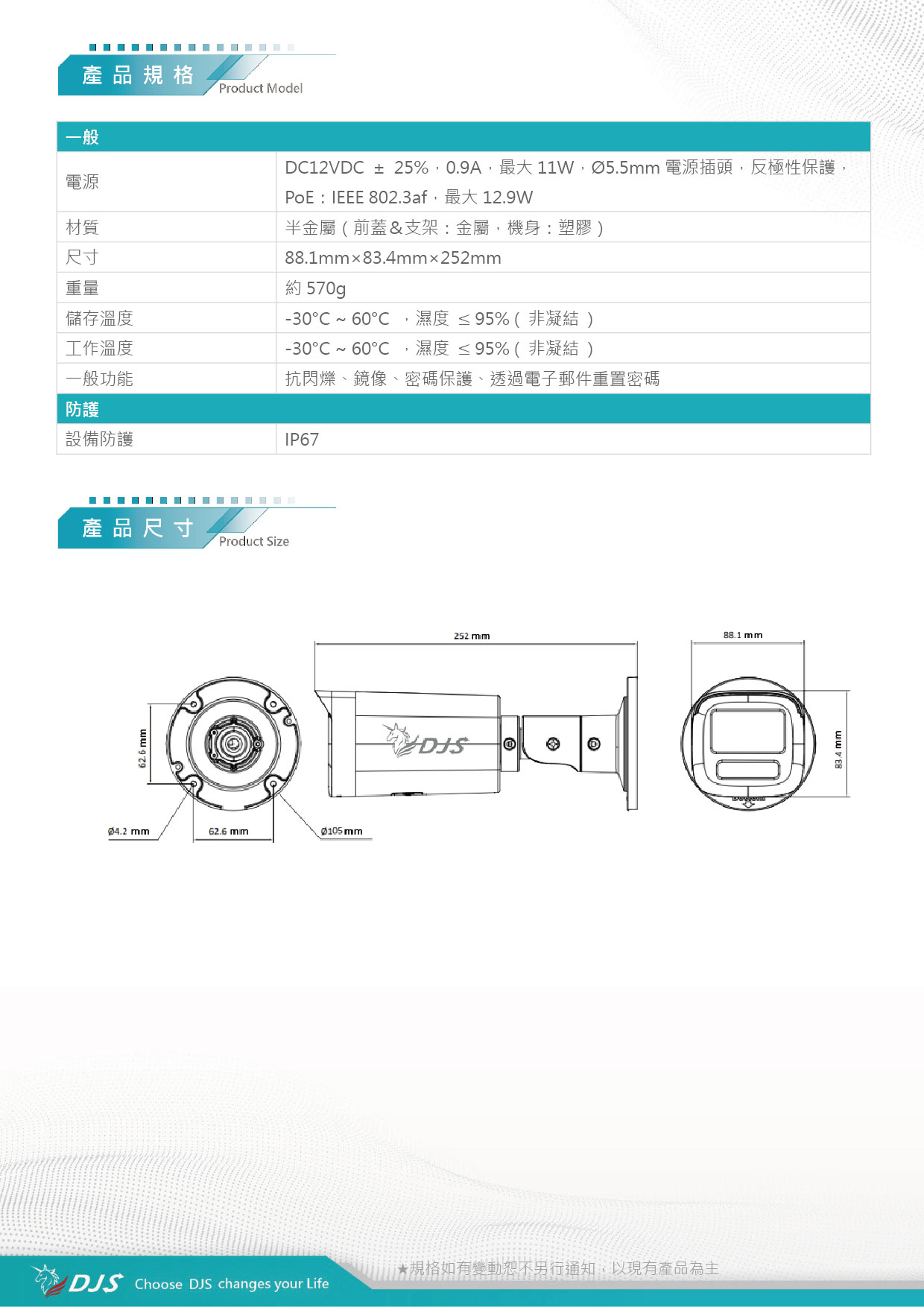 - IP67防水防塵等級