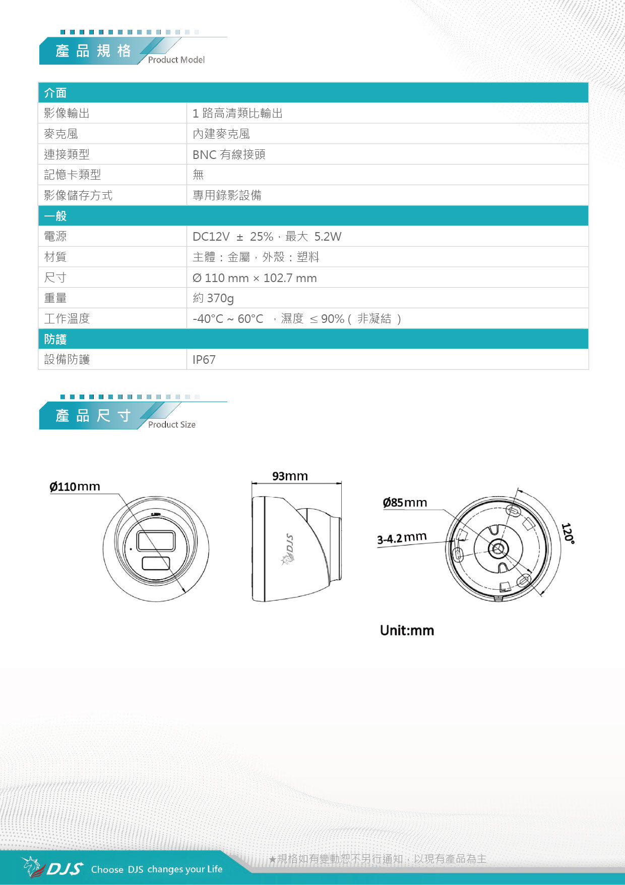 | 尺寸 | Ø 110 mm × 102.7 mm | |||