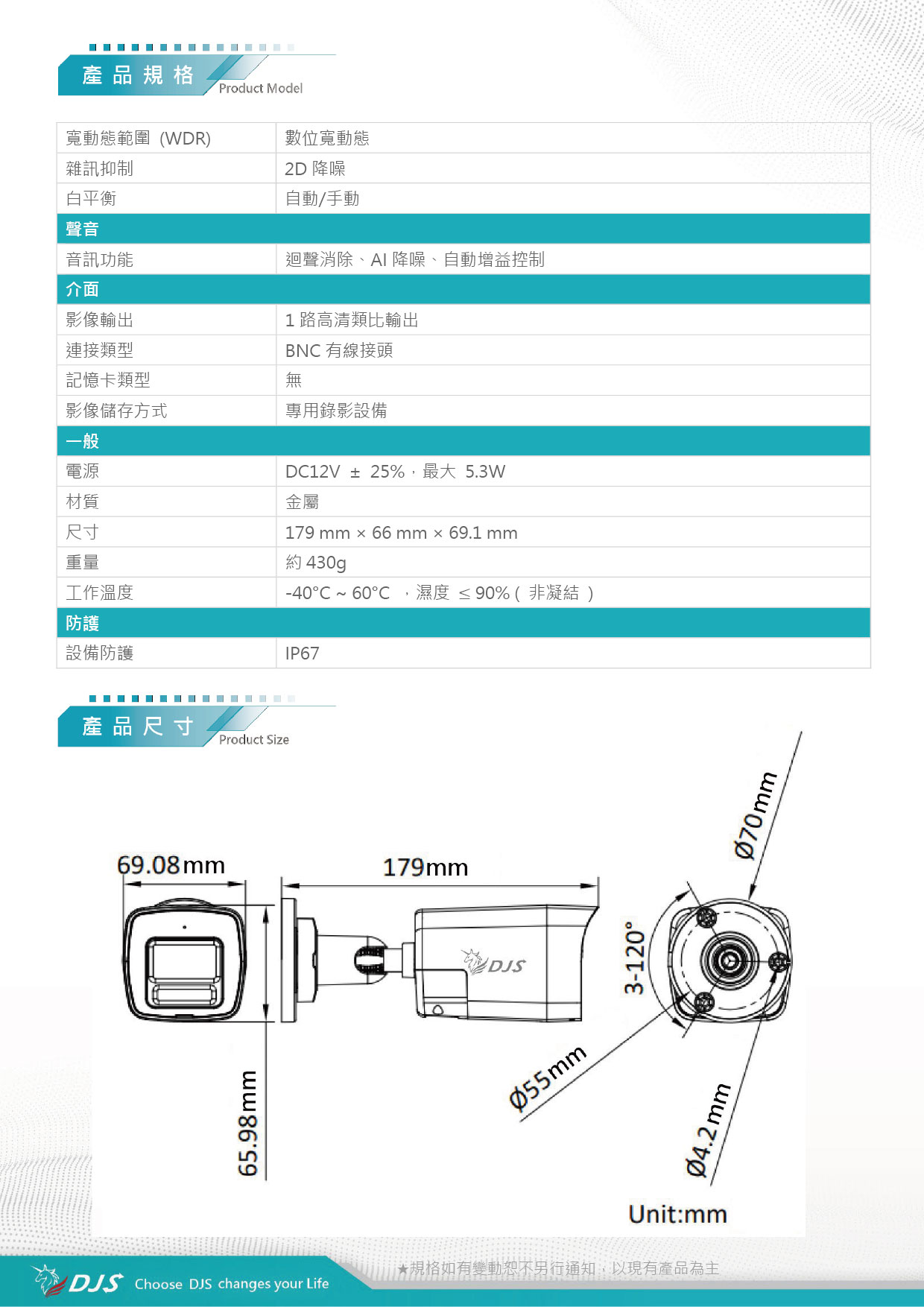 | 影像增強 | DWDR、背光補償、高光補償、全局曝光 | |||