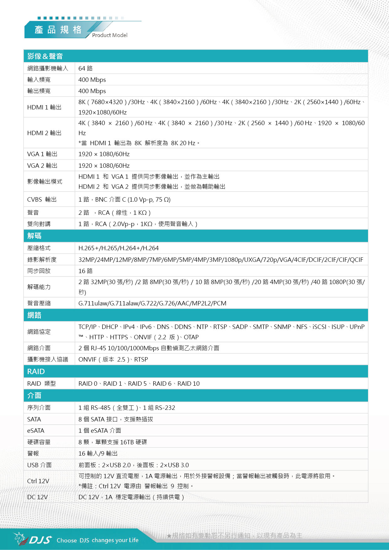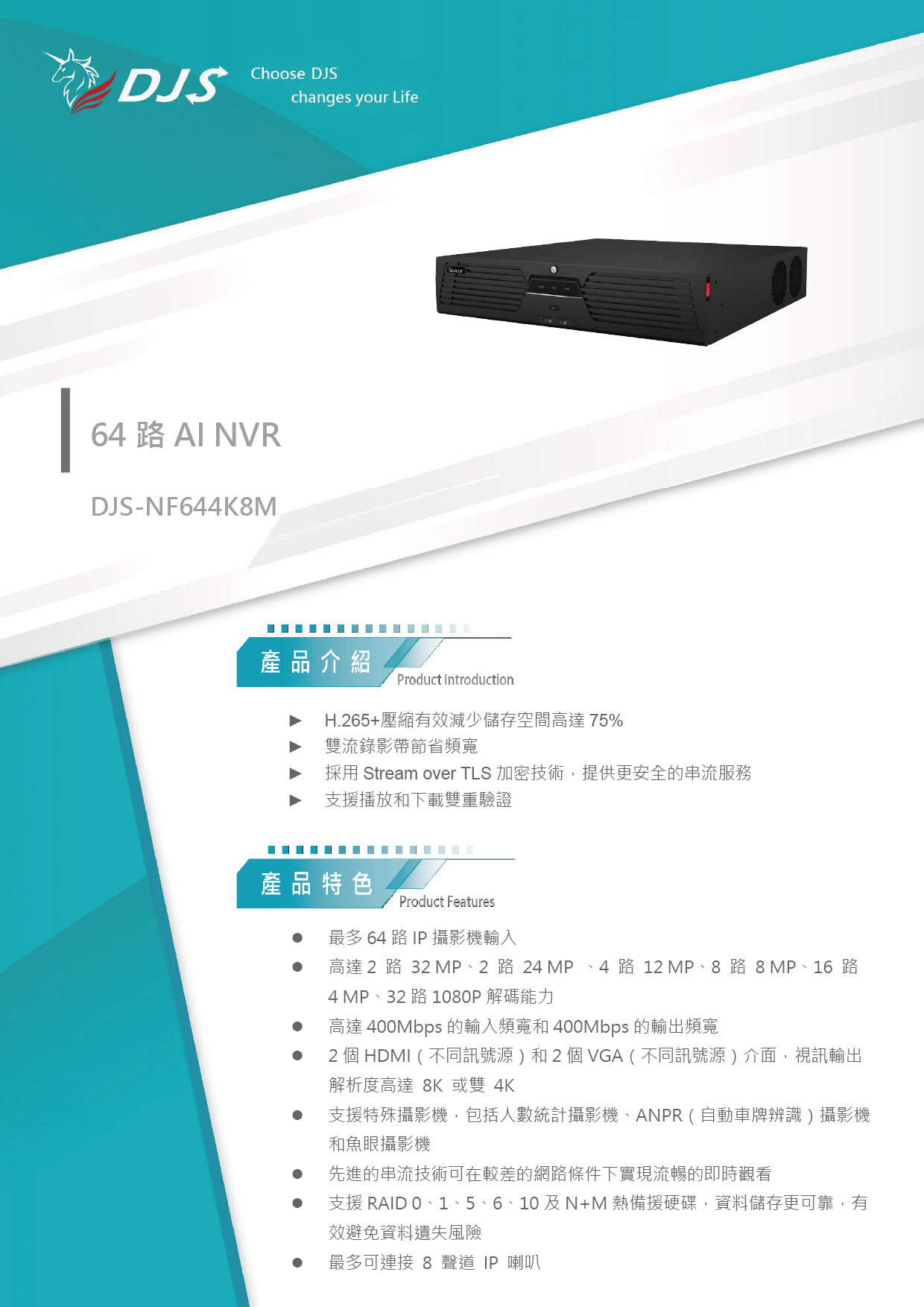 2路32MP(30張/秒) /2路8MP(30張/秒) / 10路8MP(30張/秒) /20路4MP(30張/秒) /40路1080P(30張/秒) |