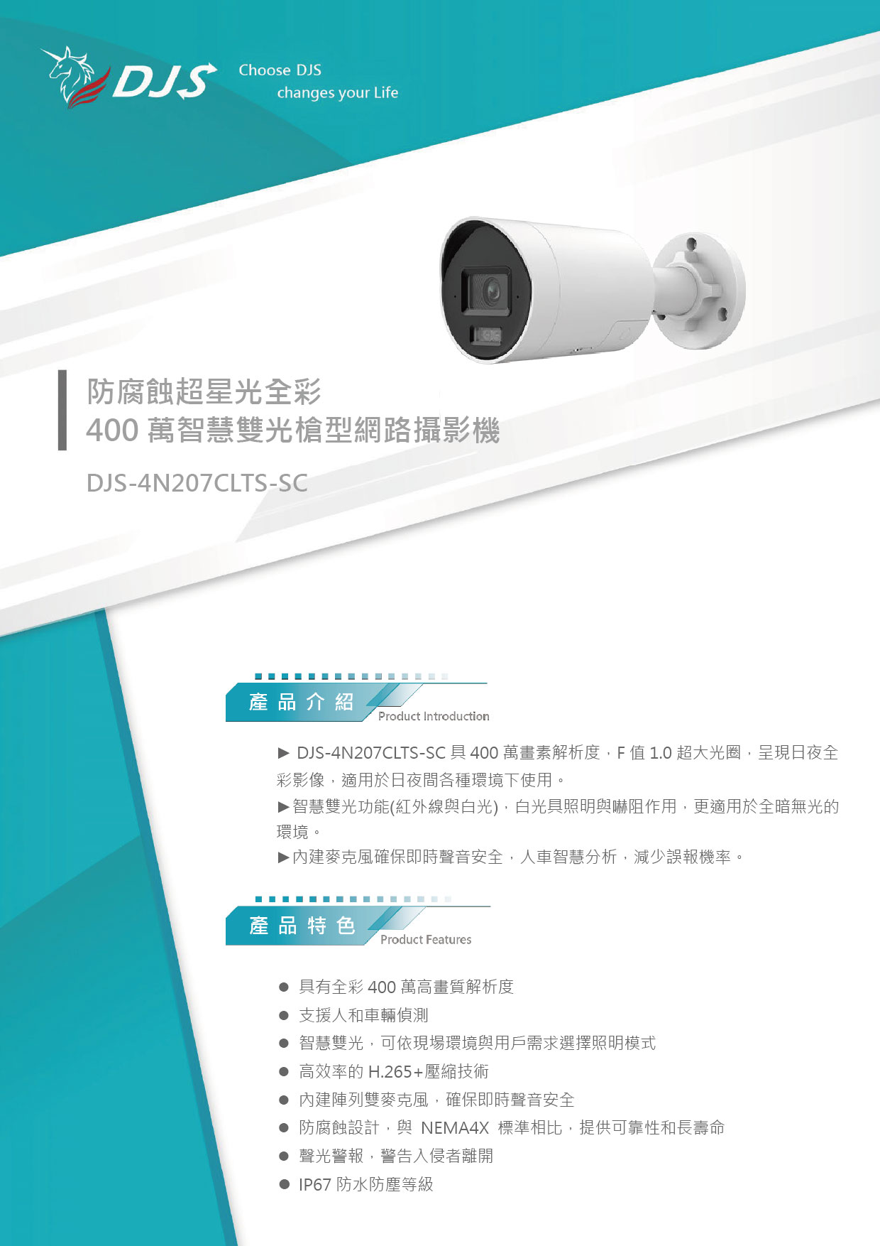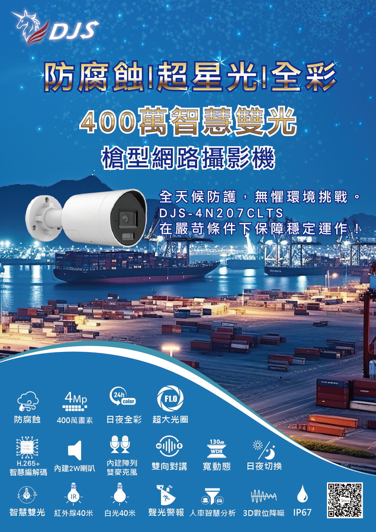 防腐蝕超星光全彩400萬智慧雙光槍型網路攝影機
