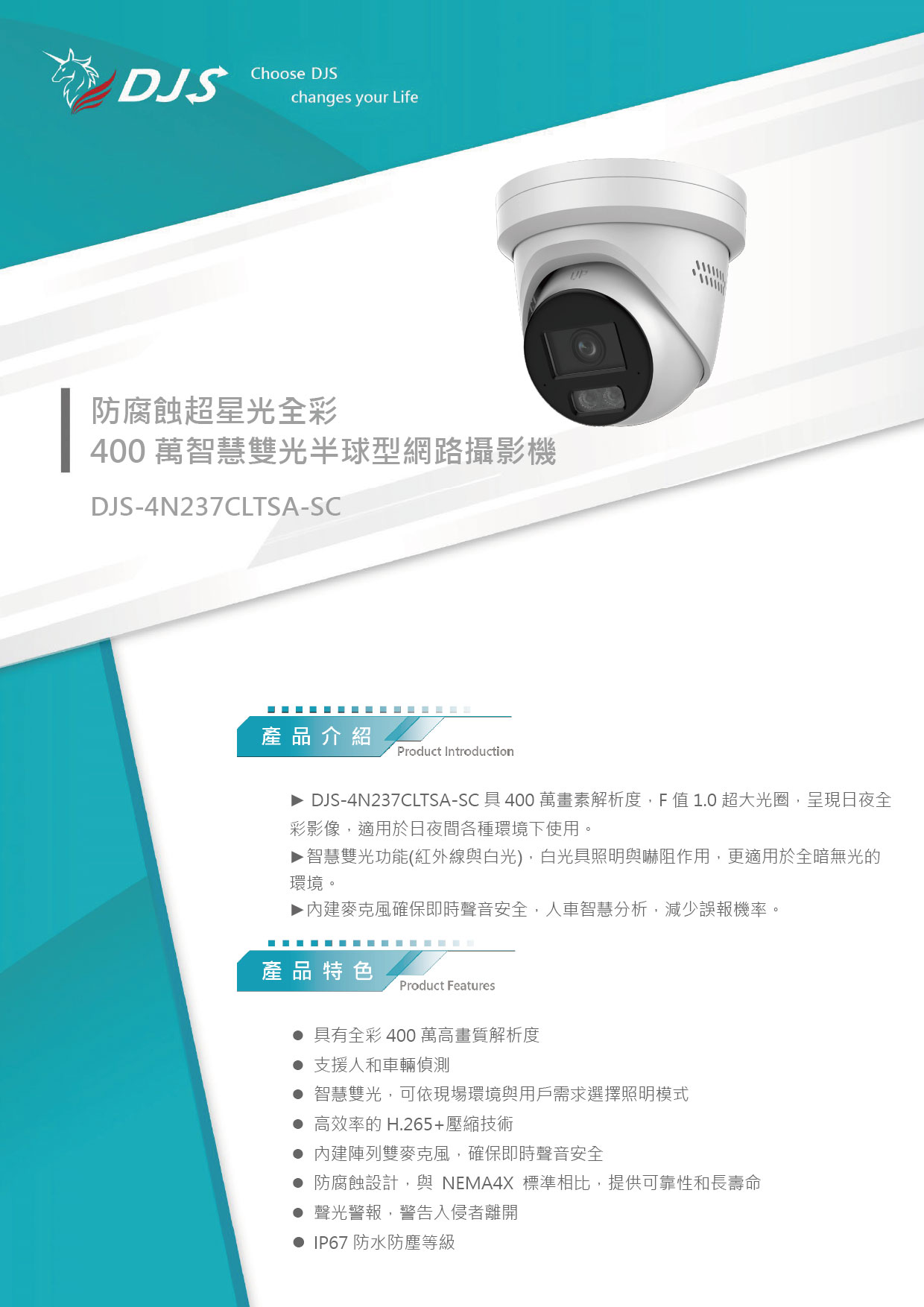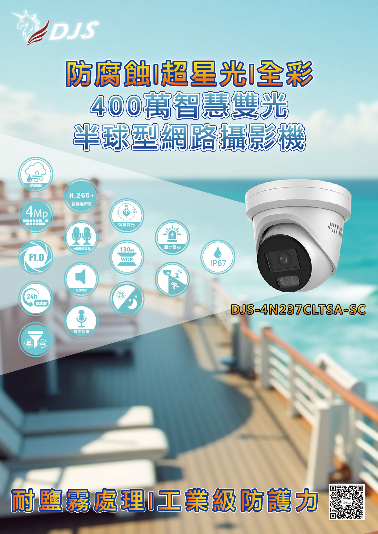 防腐蝕超星光全彩400萬智慧雙光半球型網路攝影機