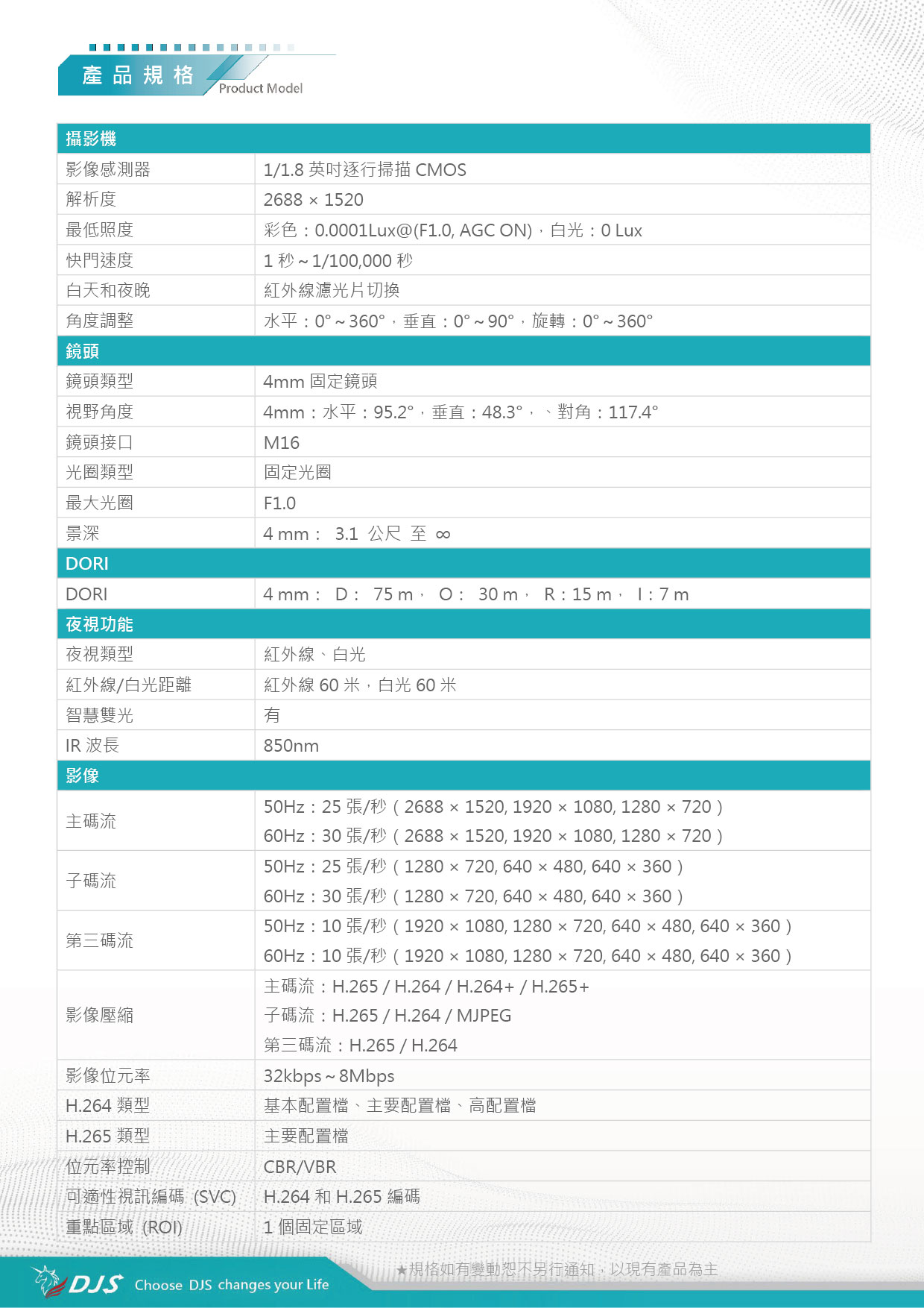 | 鏡頭類型 | 4mm 固定鏡頭 | |||