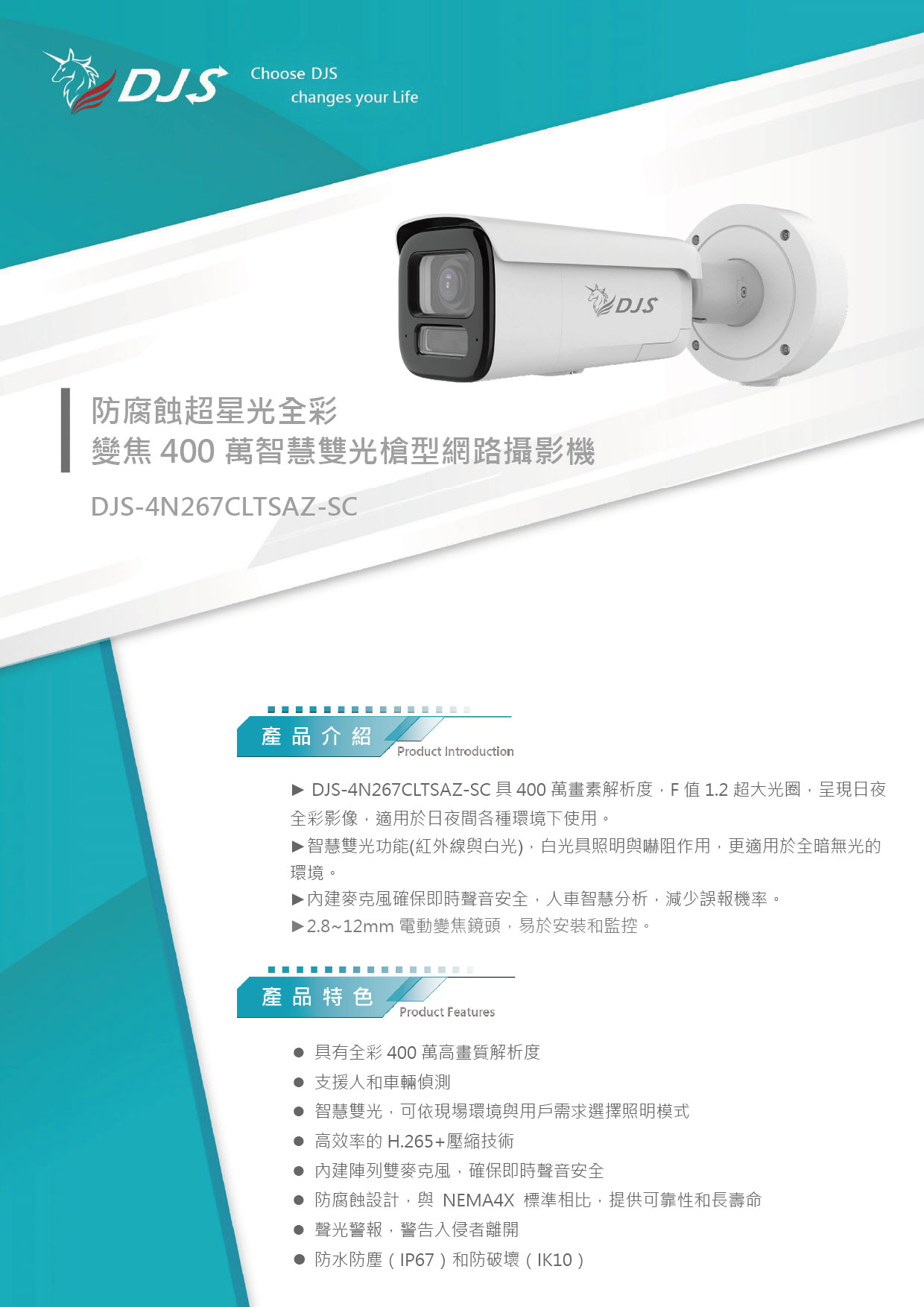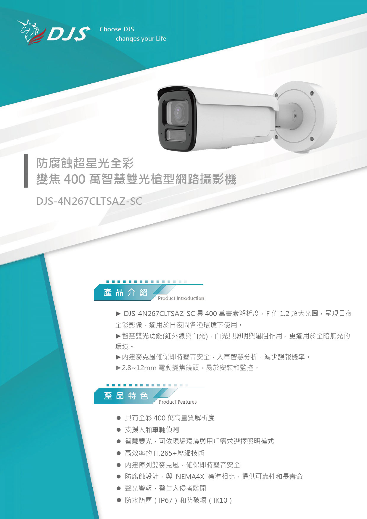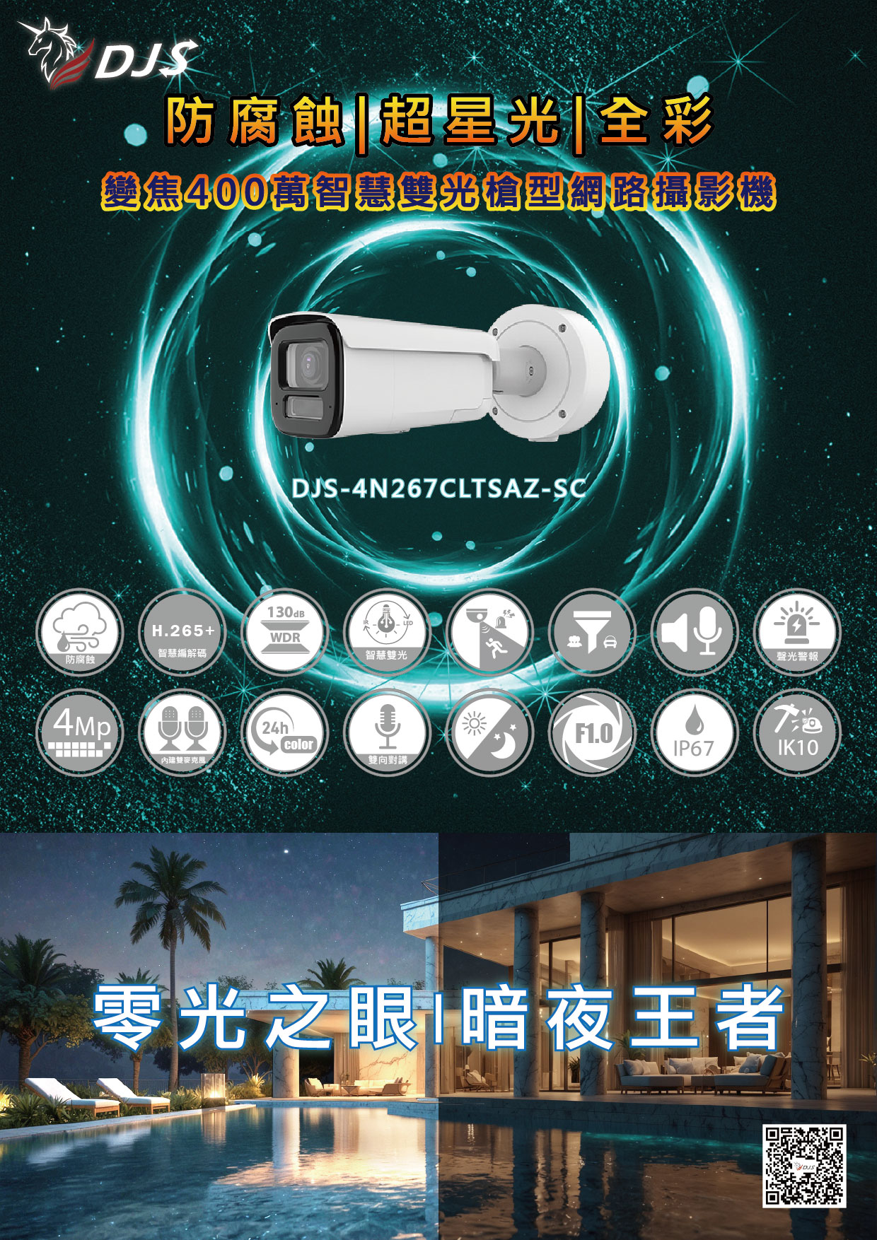 防腐蝕超星光全彩變焦400萬智慧雙光槍型網路攝影機