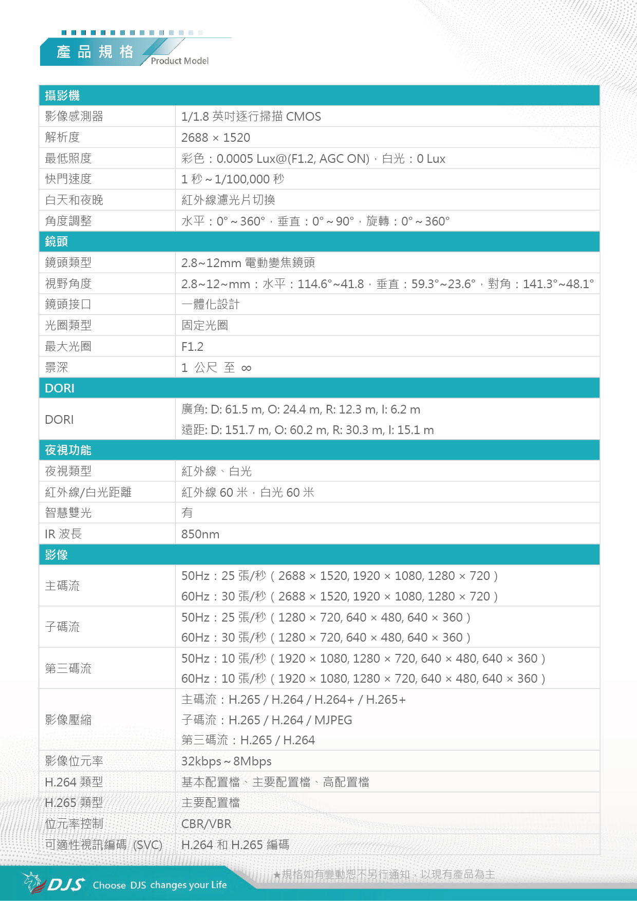 | 視野角度 | 2.8~12~mm:水平:114.6°~41.8,垂直:59.3°~23.6°,對角:141.3°~48.1° | |||
