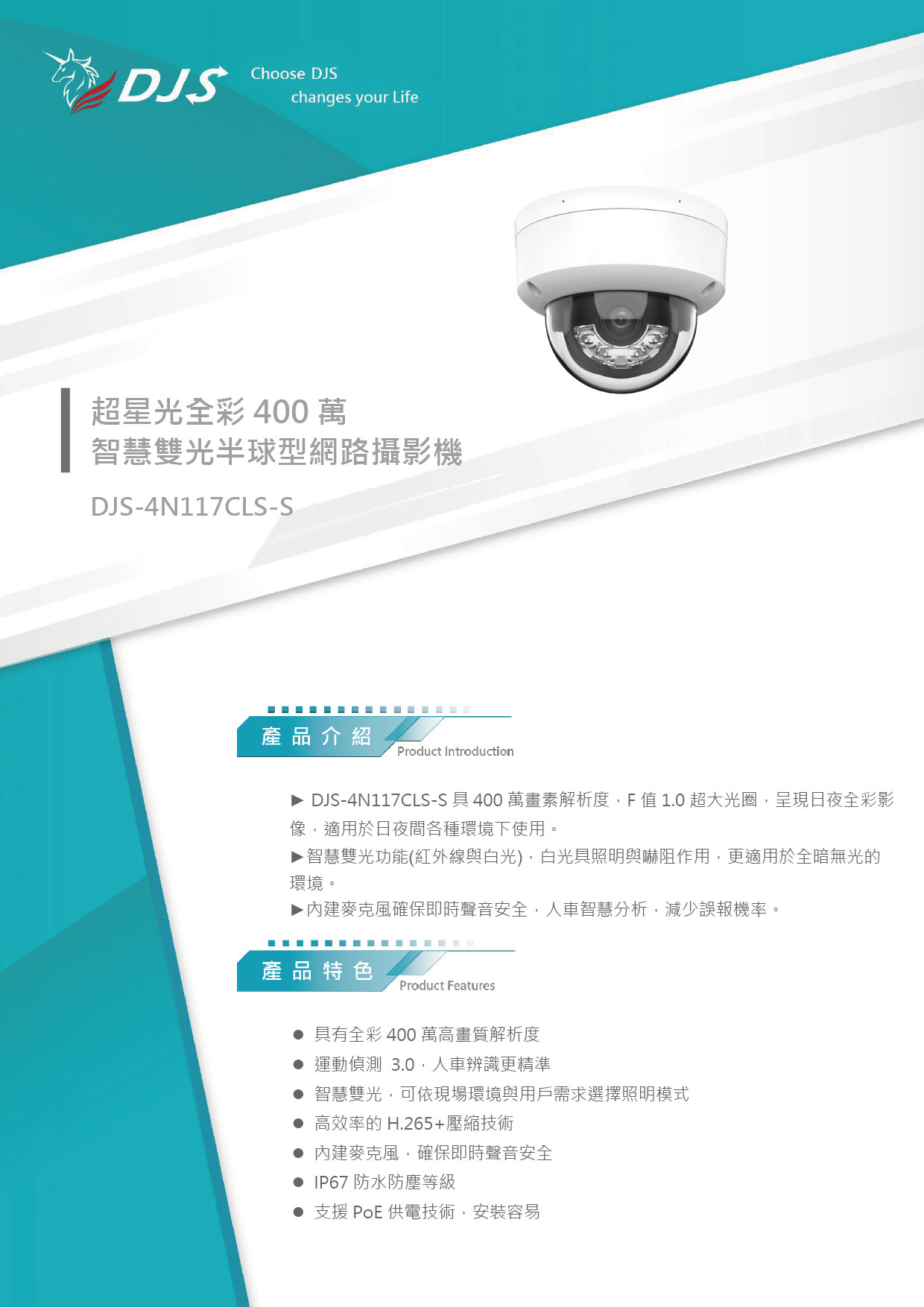 - 支援PoE供電技術,安裝容易