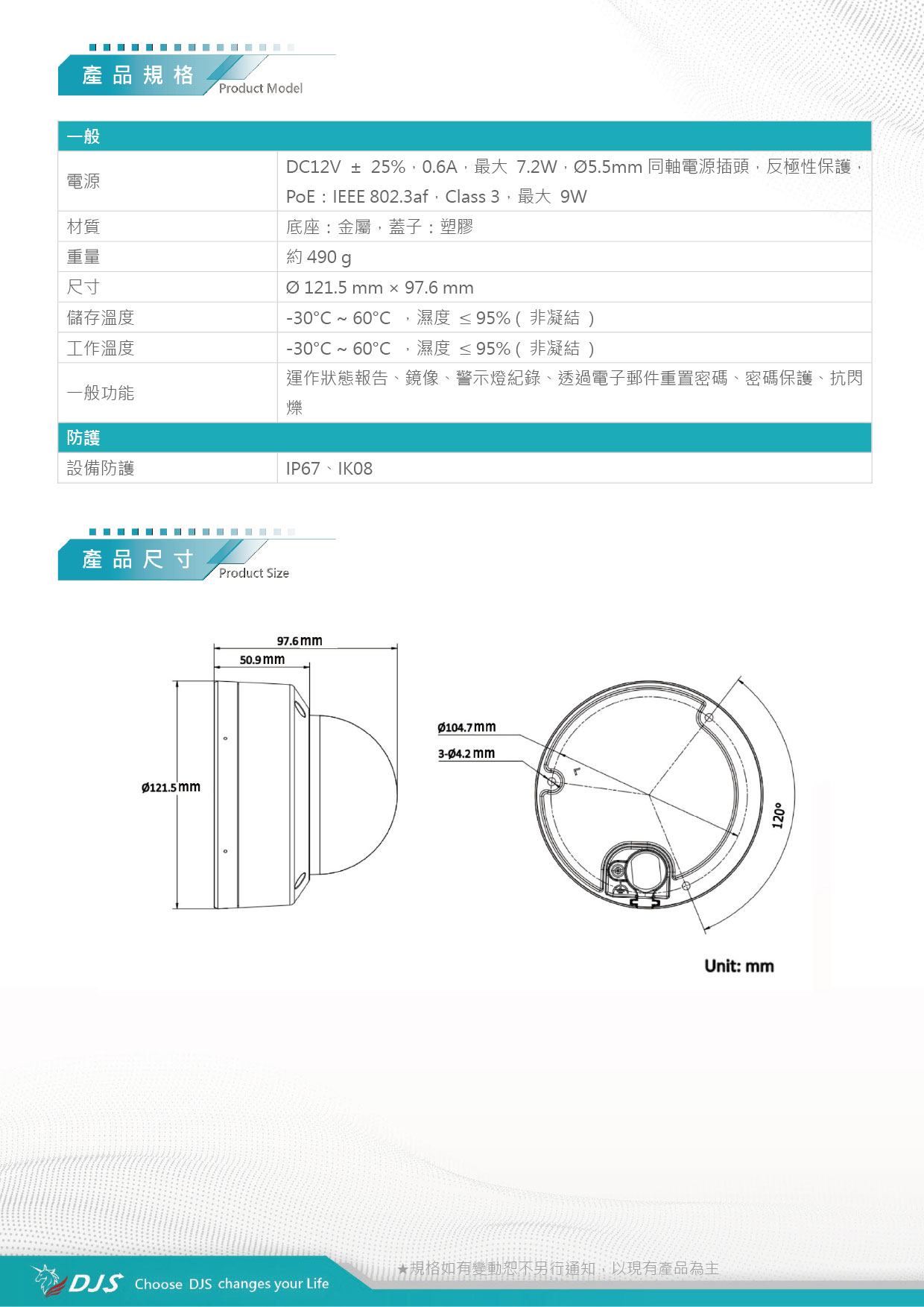 - IP67防水防塵等級