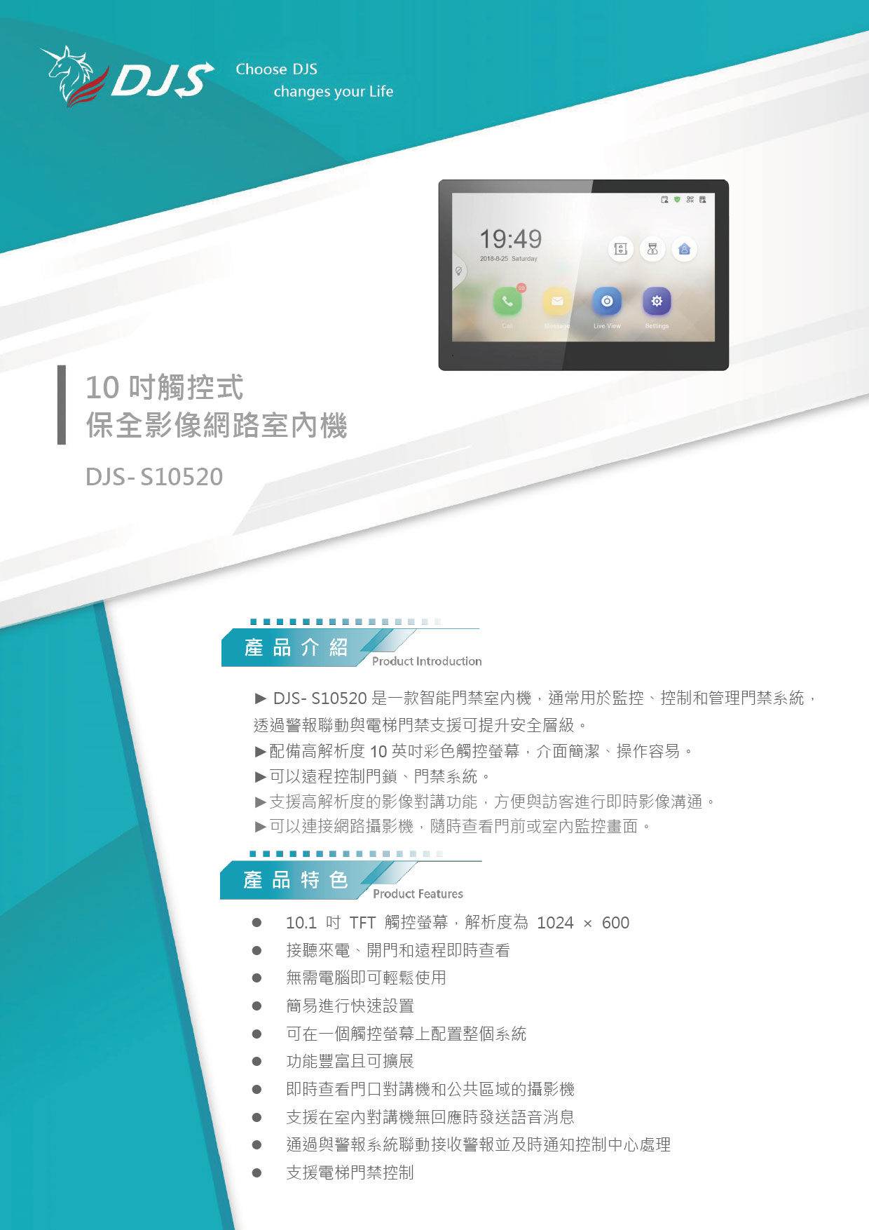 10吋觸控式 保全影像網路室內機