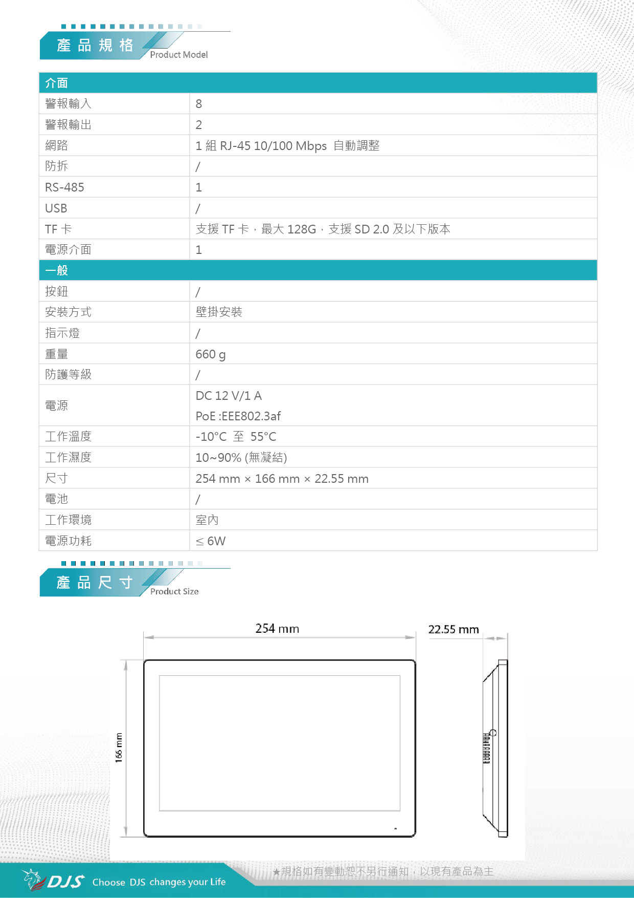 | 電源功耗 | ≤ 6W | |||