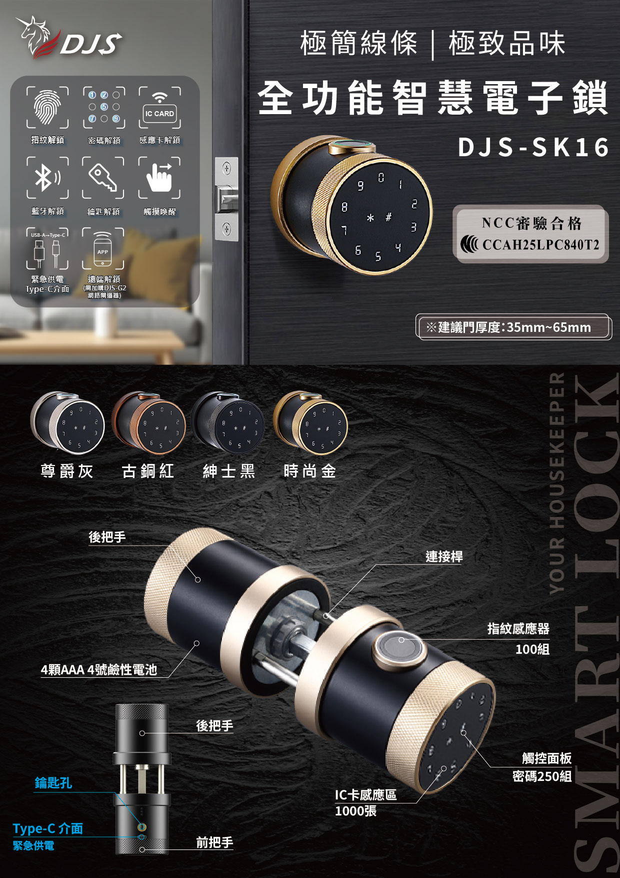 指紋、密碼、鑰匙、手機藍牙、感應卡 |